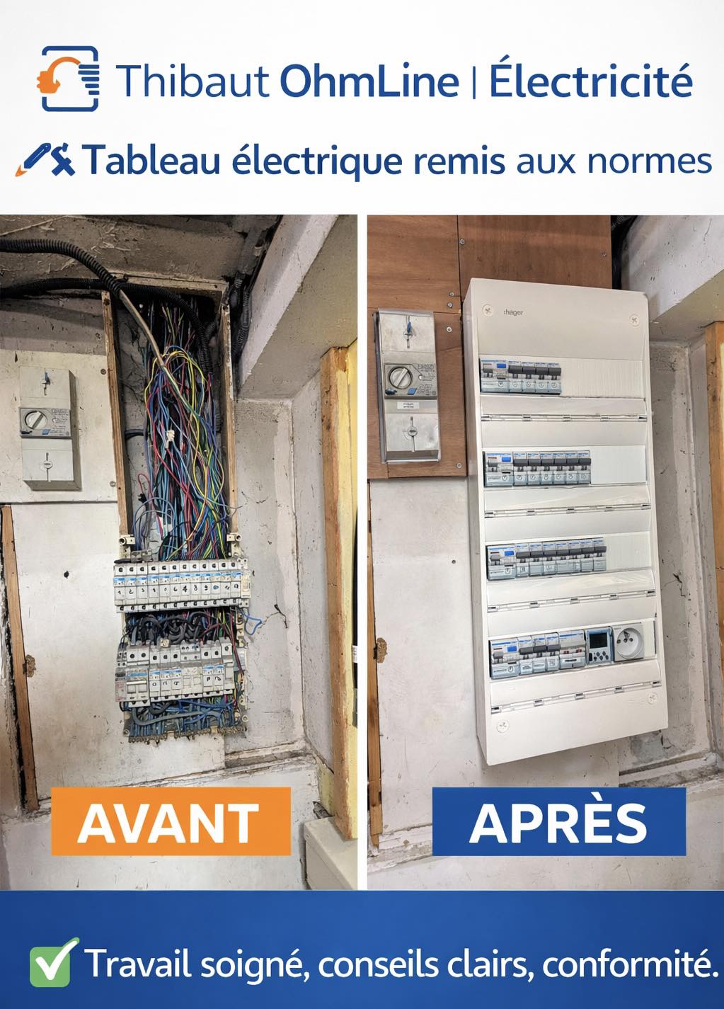 Chaque intervention est réalisée avec sérieux, dans le respect des normes, et avec du matériel fiable. Mon objectif est de proposer un travail propre, durable, et instaurer une relation de confiance.